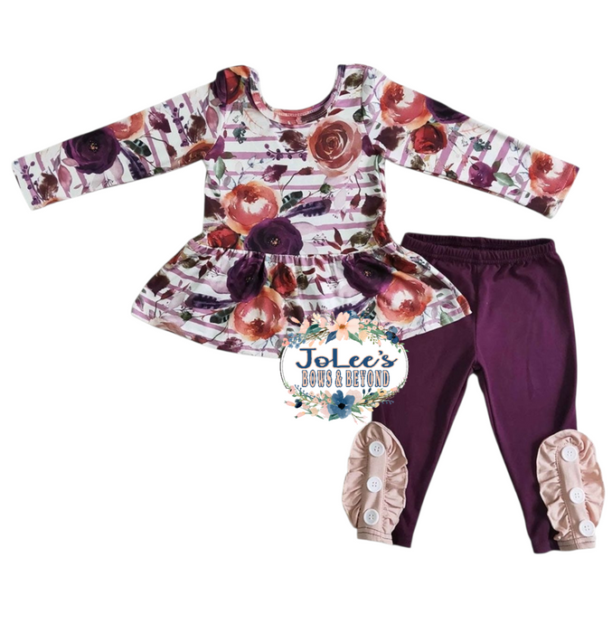 Purple Striped Floral Legging Set