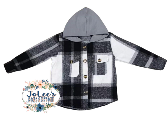 Black/White Flannel Hooded Button-up